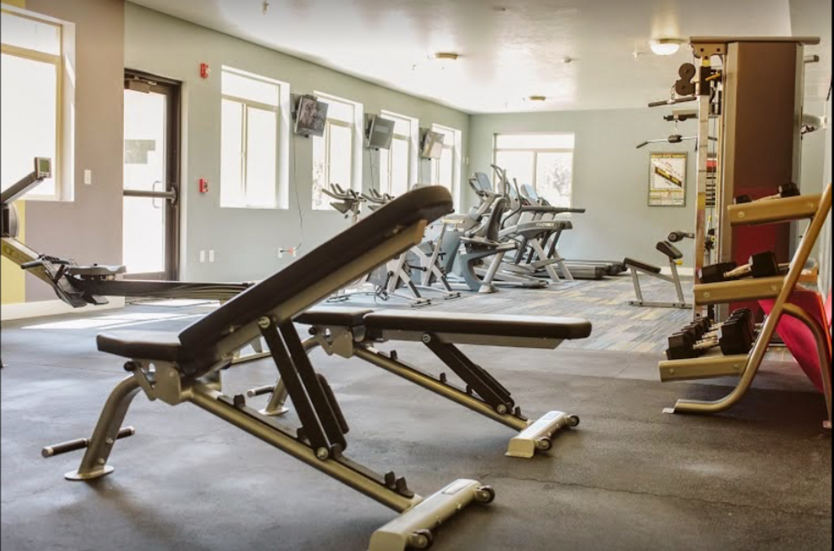 We have a very well-equipped, 1300 SQ FT 24-hr fitness center, a large fenced dog park where your pup can play with their community pup friends, 2 basketball standards in our enclosed sports court, 3 ELEVATORS, and indoor controlled-access parking garages.